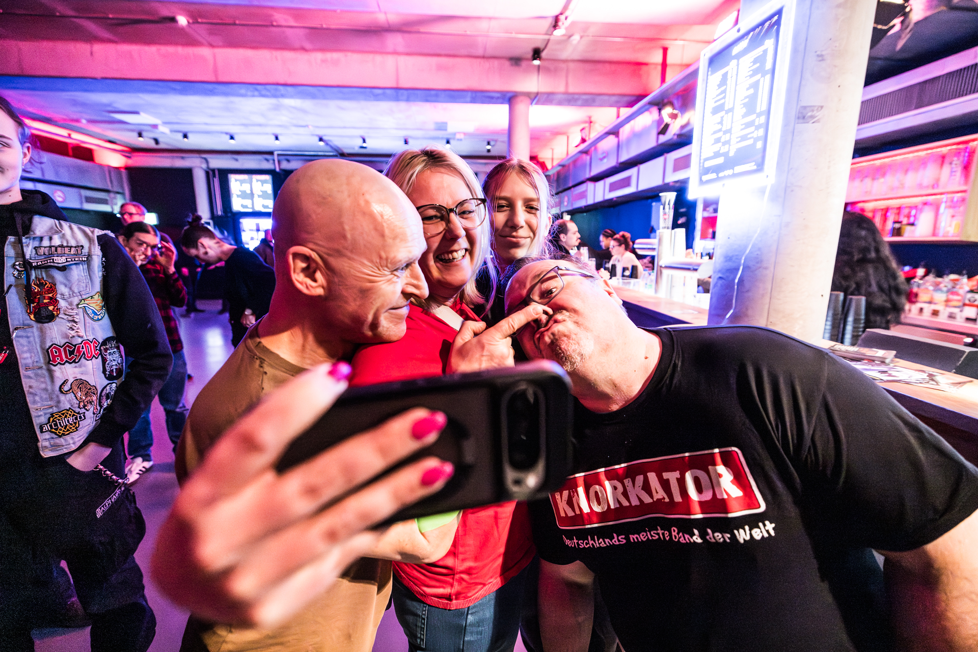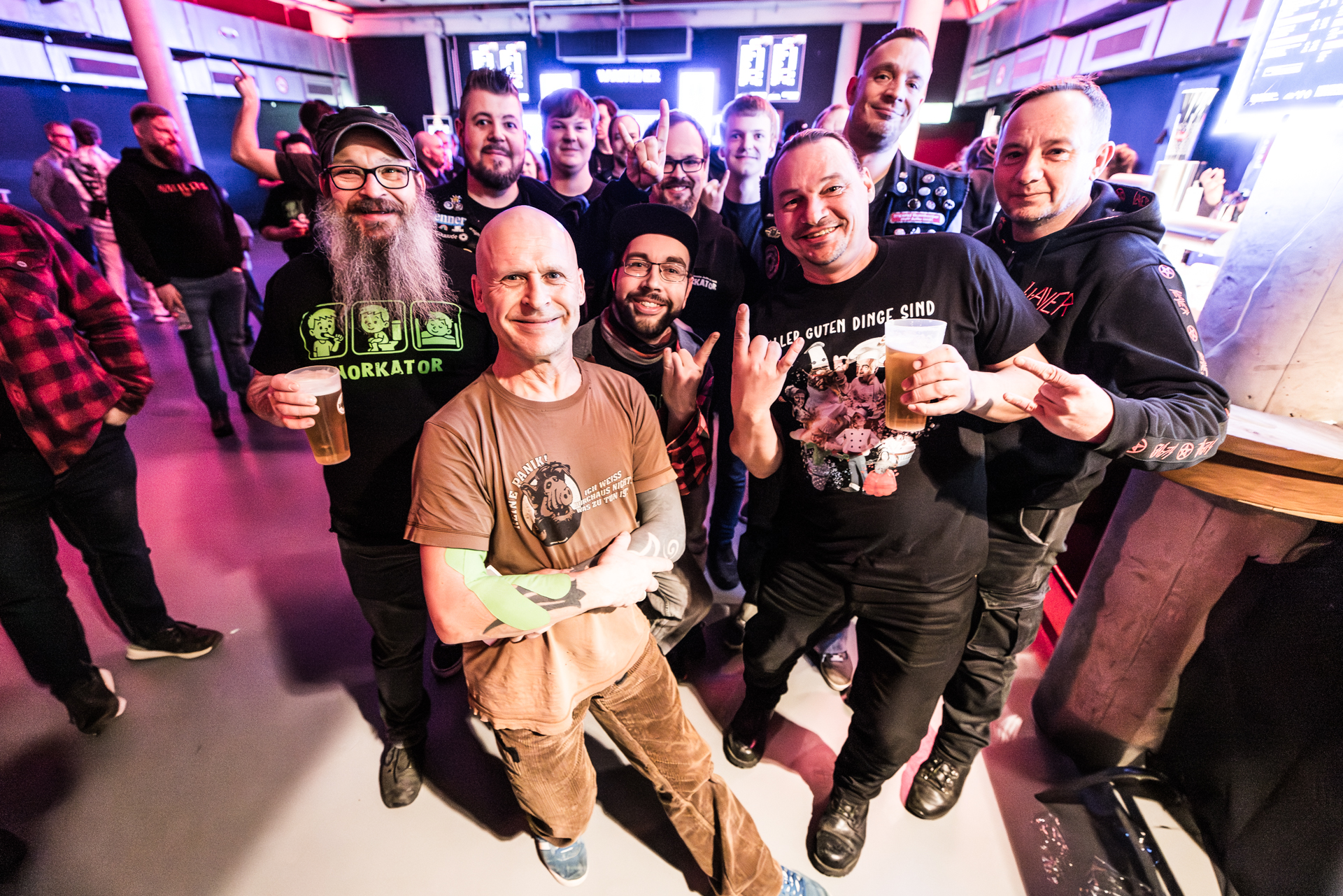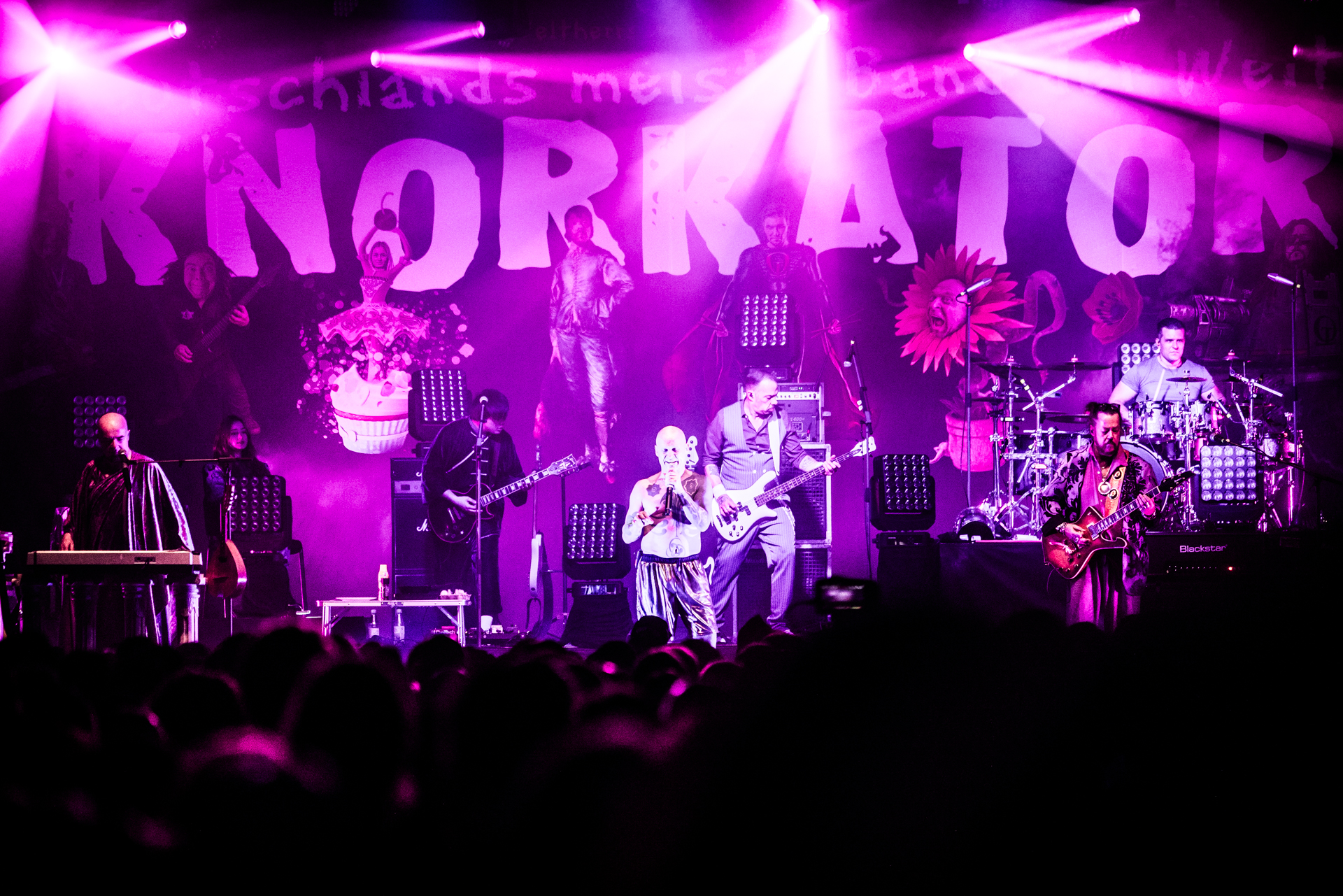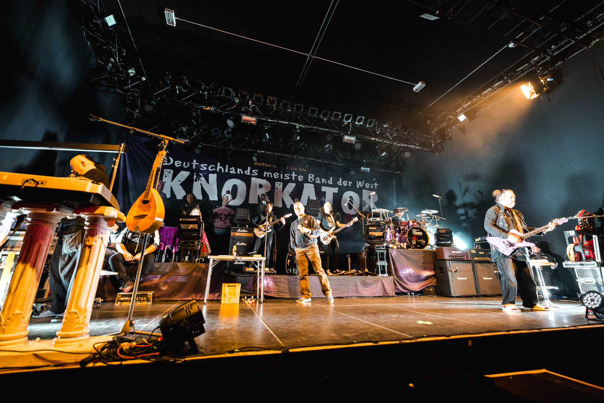 und der Abend ist all den hier Gereisten gewidmet, die Knorkator hören, sehen und vielleicht bestaunen wollen.