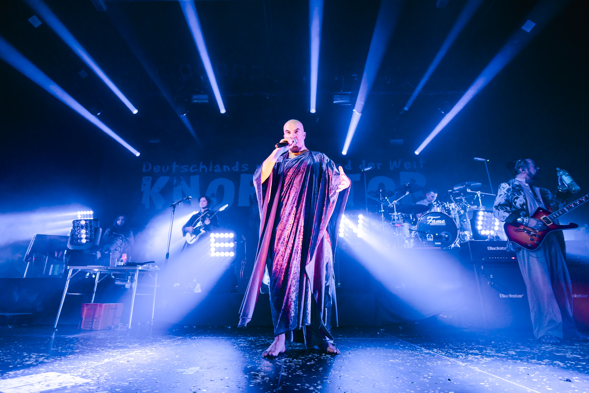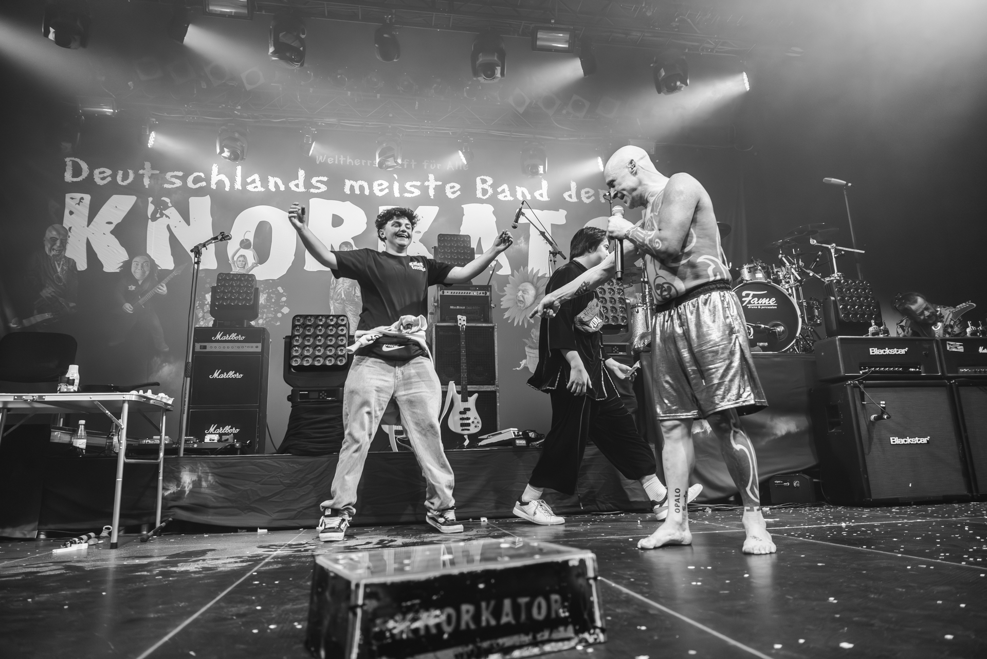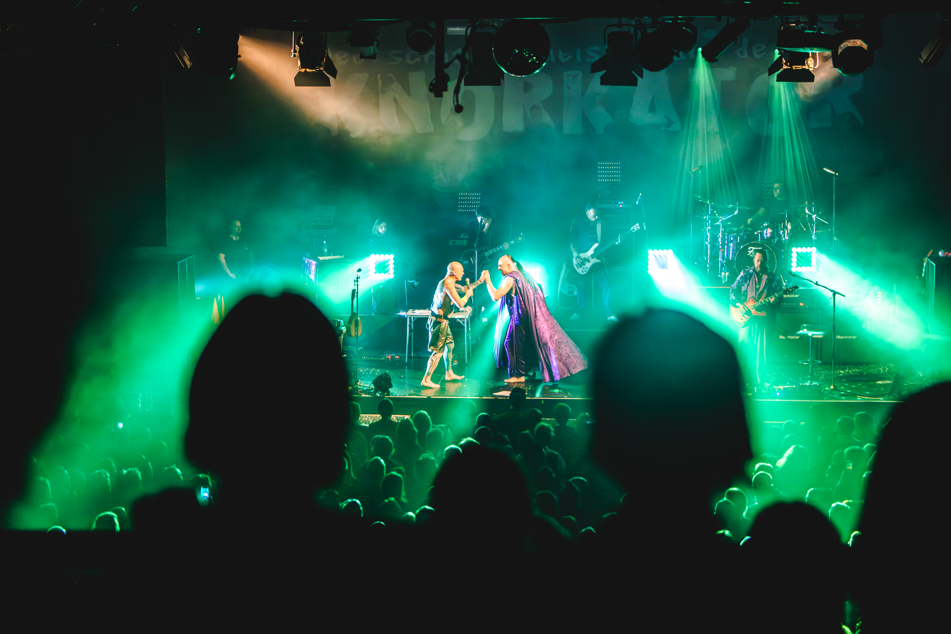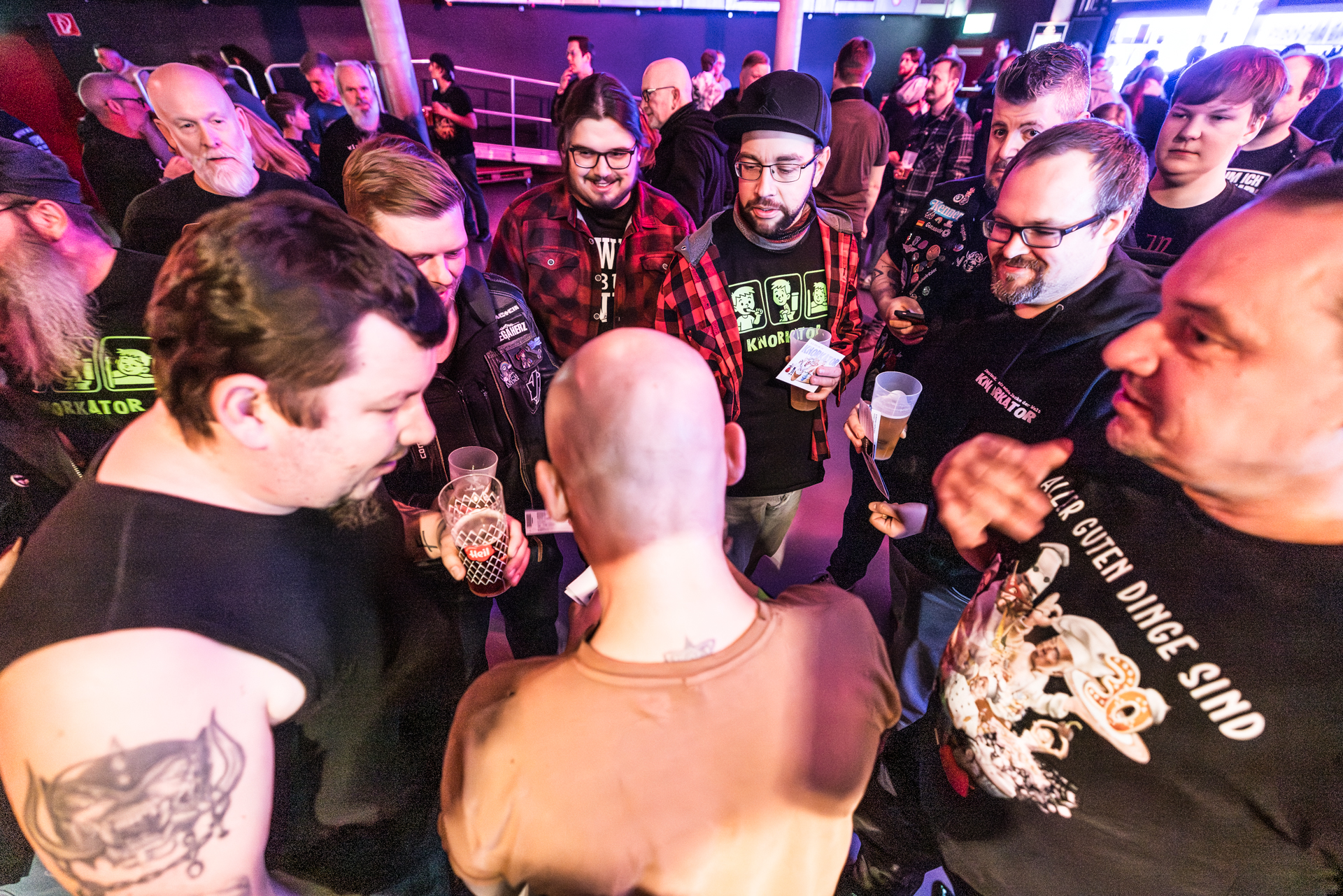 und der Abend ist all den hier Gereisten gewidmet, die Knorkator hören, sehen und vielleicht bestaunen wollen.