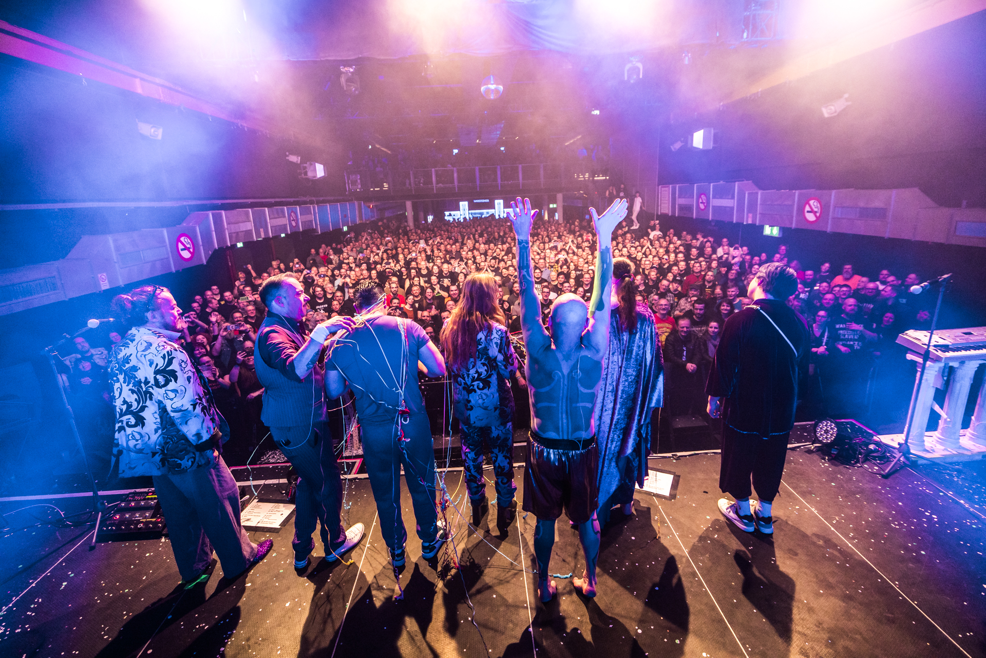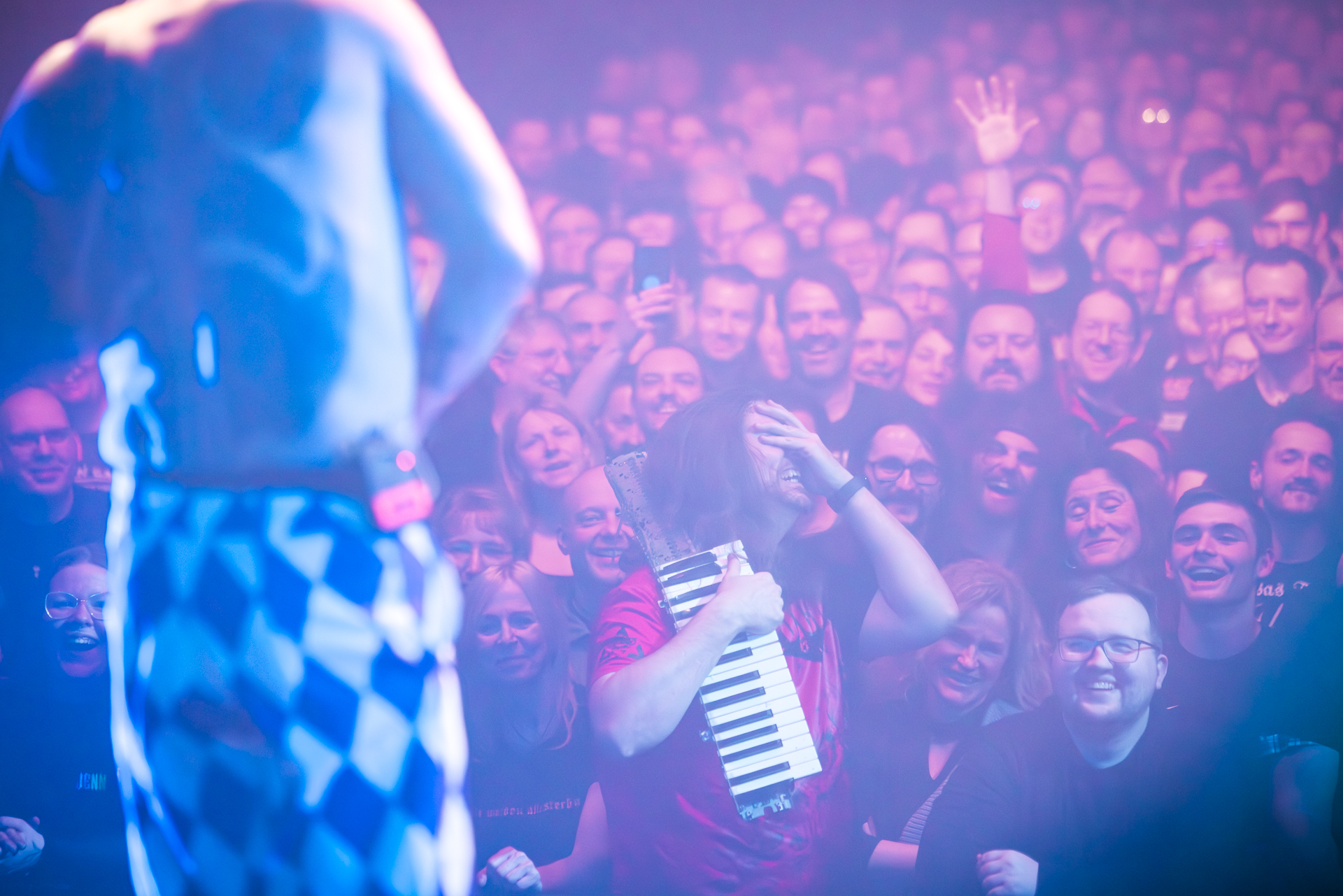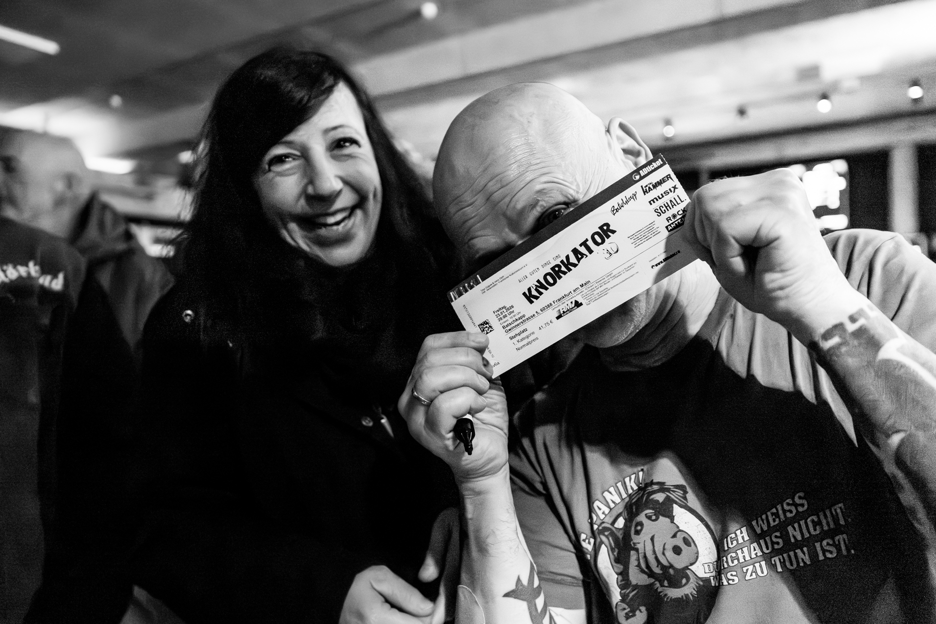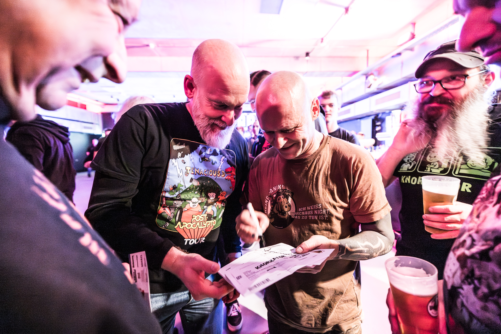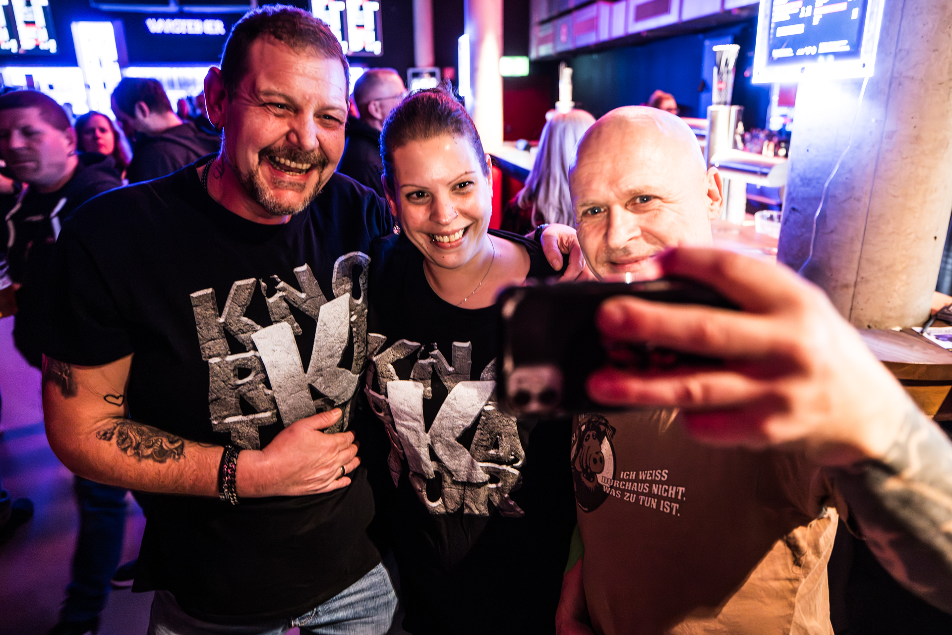 und der Abend ist all den hier Gereisten gewidmet, die Knorkator hören, sehen und vielleicht bestaunen wollen.