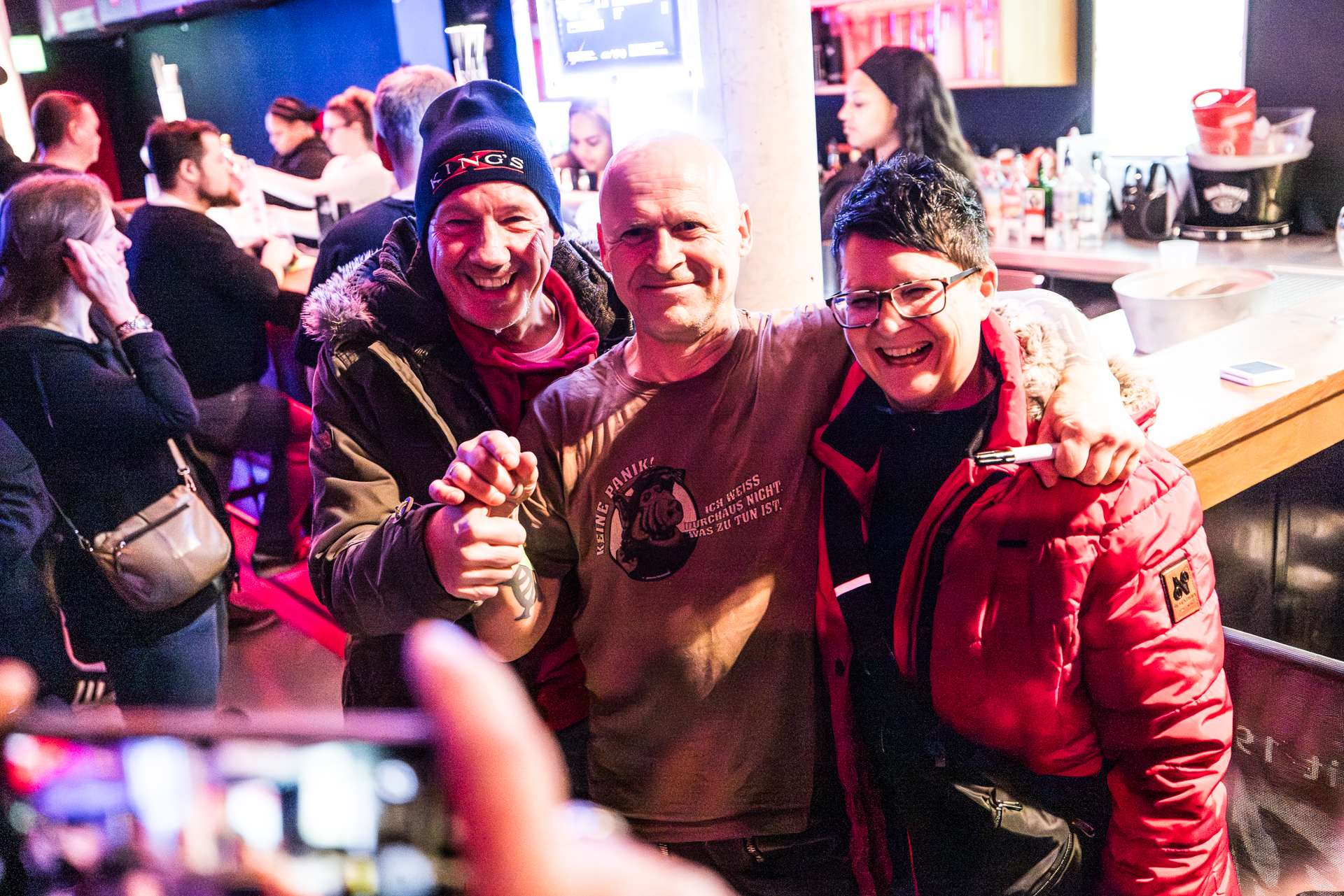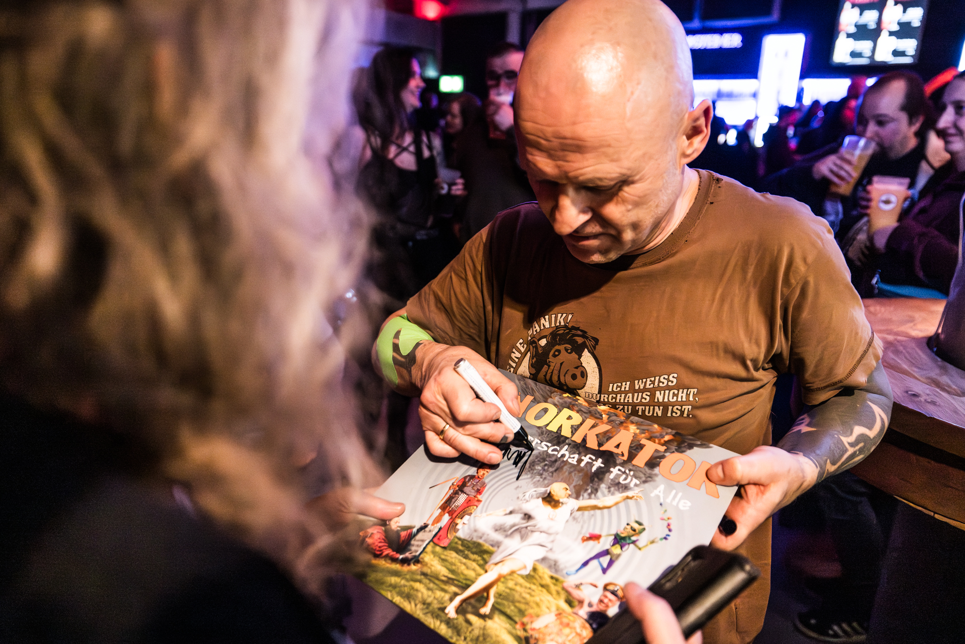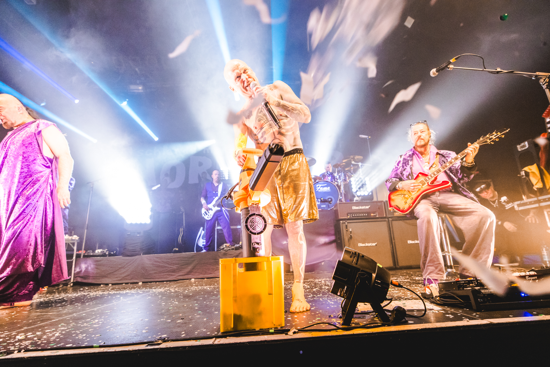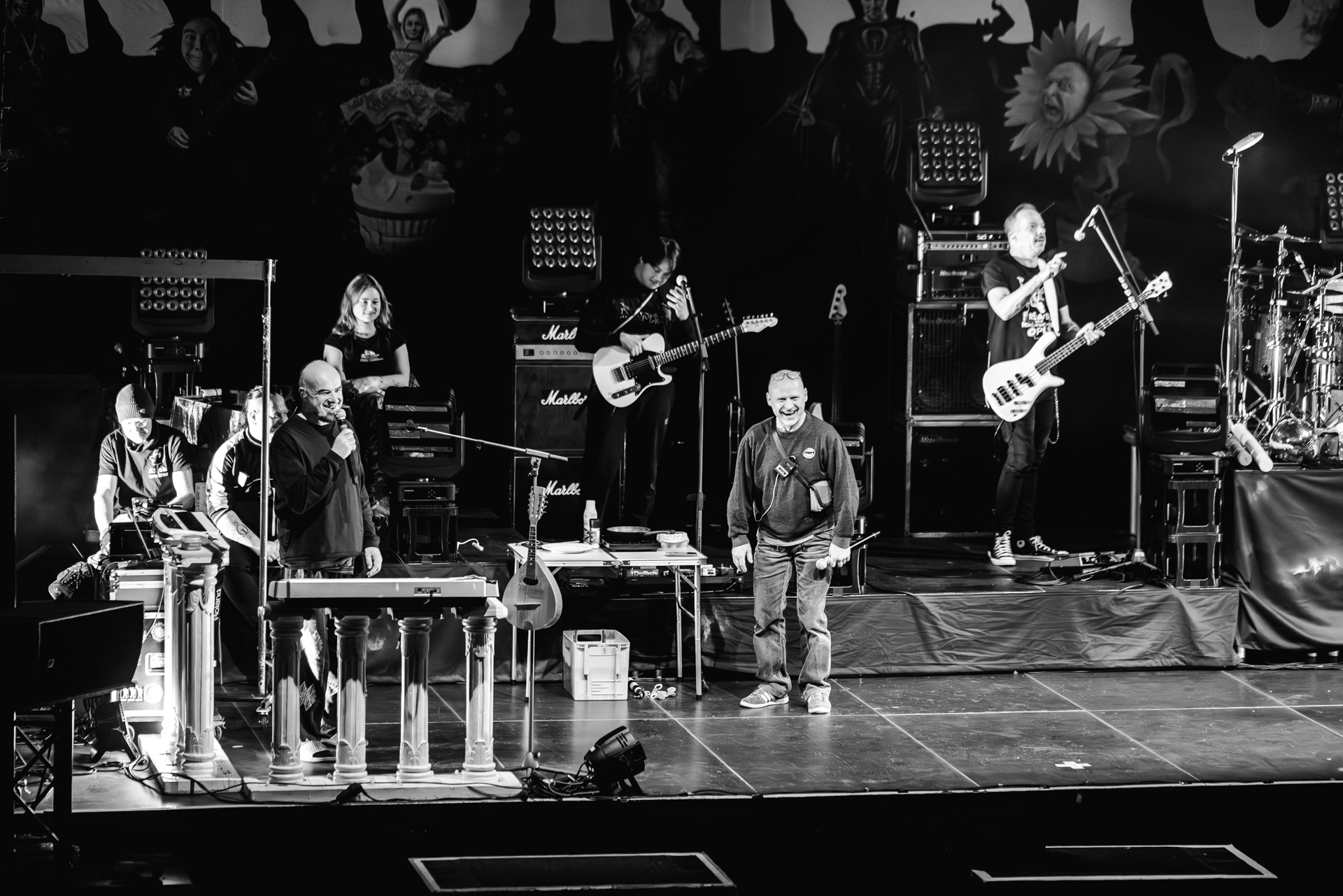 und der Abend ist all den hier Gereisten gewidmet, die Knorkator hören, sehen und vielleicht bestaunen wollen.